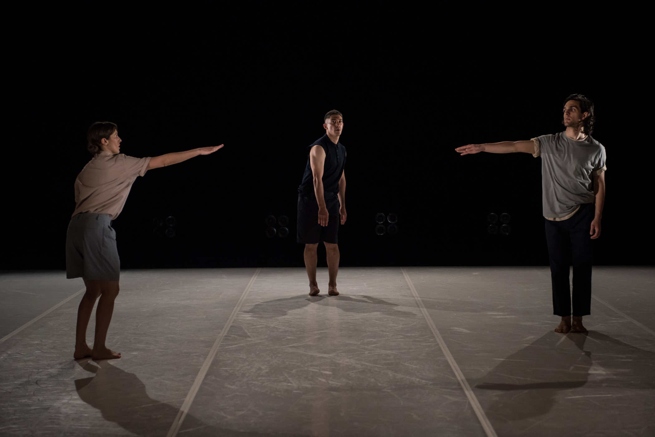 Summary: Partendo da una riflessione intorno all’universo dello scultore Alberto Giacometti, un rituale collettivo per tre danzatori che indagano sulla reazione del corpo alla forza di gravità.