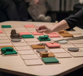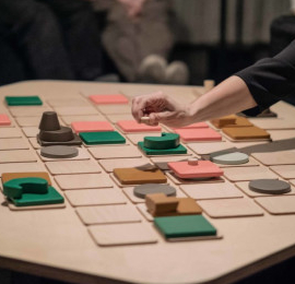 di società per sviluppare un format in cui lingue, storie, ecologie e tradizioni culturali differenti possano modellare narrazioni e visioni: gli spettatori/partecipanti sono invitati a muovere diversi «agenti» sul campo di gioco, secondo regole date e strategie concordate all’interno di ogni squadra, con l’obiettivo comune di mantenere il sistema in una condizione di equilibrio, senza dimenticare però compiti e obiettivi specifici differenti per ciascuna squadra… Giocatrici e giocatori si troveranno così a cooperare tanto quanto a competere, vivendo l’incertezza e le conseguenze delle proprie scelte. La collaborazione fra partecipanti influenza quindi l’andamento stesso dell’esperienza: Eutopia li interroga tutti e li rende così partecipi delle scelte che nascono dalla loro azione.